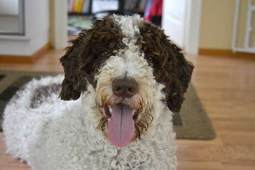 Tuomari oli tällä kertaa erittäin perusteellinen ja huolellinen. Hän katsoi ihan rauhassa jokaikisen, eikä kiirehtinyt. Hän tunnusteli Aadankin ihan nenästä hännänpäähän, ihan kuin oikeissa näyttelyissä. Se oli tosi hienoa! Sai (kerrankin) tosi hyvää harjoitusta. Aada antaa hyvin katsoa hampaat, mutta kopelointia on harjoiteltu niin vähän, että se tavallisesti pyllähtää istumaan. Nyt se kyllä malttoi seistä, vähän alkoi peppu vajota maata kohti, mutta sain sen pysymään seisaallaan.
